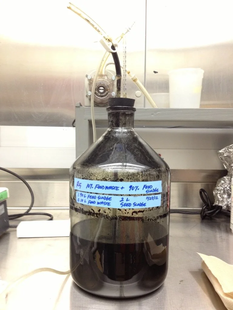 UMass Amherst conducted the bench-scale digestion study under anaerobic mesophilic conditions at 37°C for both batch and semi-continuous phases. Daily monitoring was performed for digester biogas production, biogas composition, total and volatile solids (TS/VS), pH, alkalinity, volatile acid alkalinity and nutrients over a 150-day study period. Weekly characterization of FW and SS was also performed for the extent of the study.